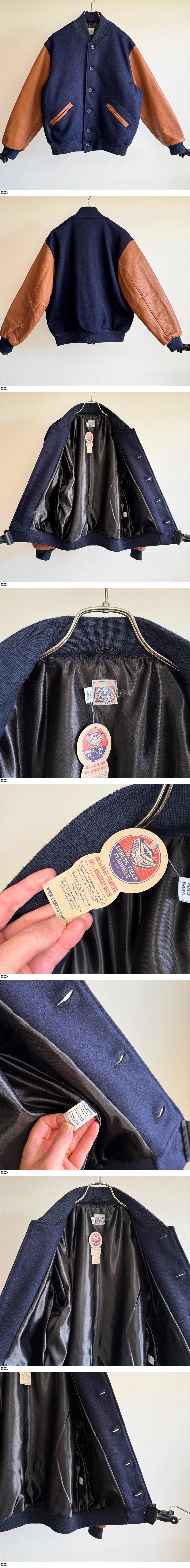 希少《 Dead / Ebbets Field Flannels》90s デッド【 エベッツフィールドフランネルズ アメリカ製 メルトン レザー ボタンスタジャン M 】 收藏
