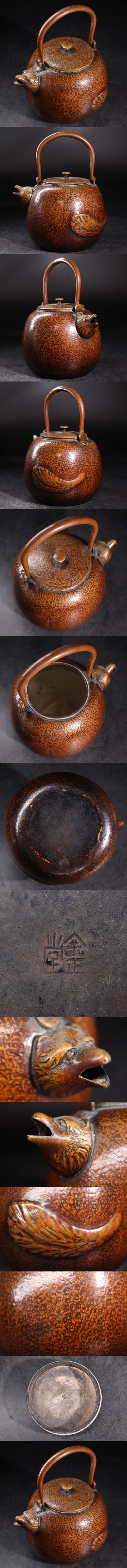 | 金正堂 底款 銅 狸型 急須 分福茶釜 容量約1050ml / 金工 彫金 湯沸かし 茶器 煎茶道具 .G3319 |