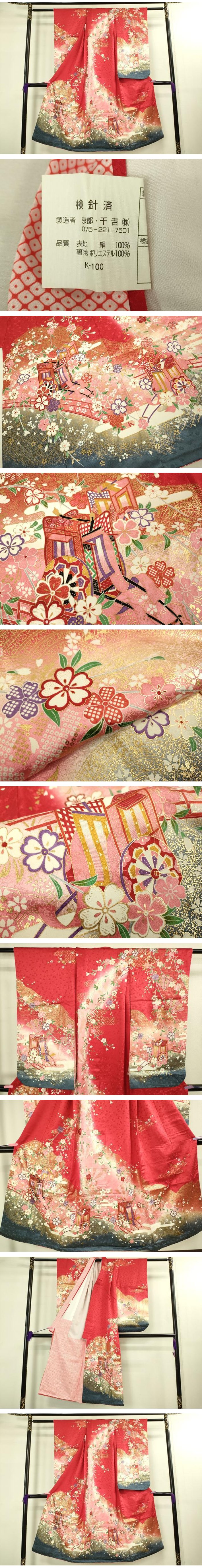 平和屋本店∵極上 女の子 十三参り 子供 祝着 御所車花文 暈し染め 金彩 逸品 DZAB3210kh6 收藏