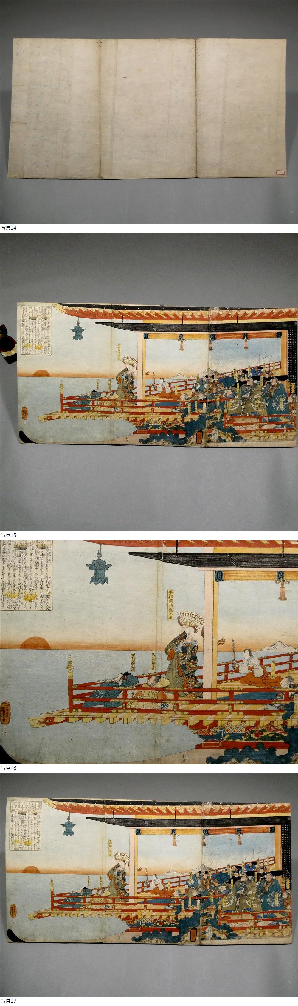 歌川国芳◆平清盛 落日を天空に返す図 3枚続揃い◆江戸時代 木版浮世絵◆福原館の平相国清盛入道■武者絵 錦絵 北斎 歌麿 広重 豊国 23 收藏