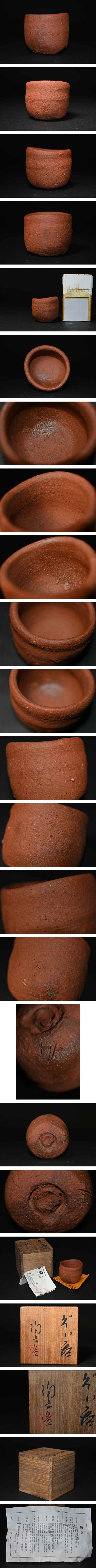 真贋保証■森陶岳 造■ 美しい赤い焼き締め ぐい呑 共箱・栞付 備前焼 窯変 酒器 酒杯 酒盃 盃 県重要無形文化財 検:日本酒 酒肴 | |||||||||