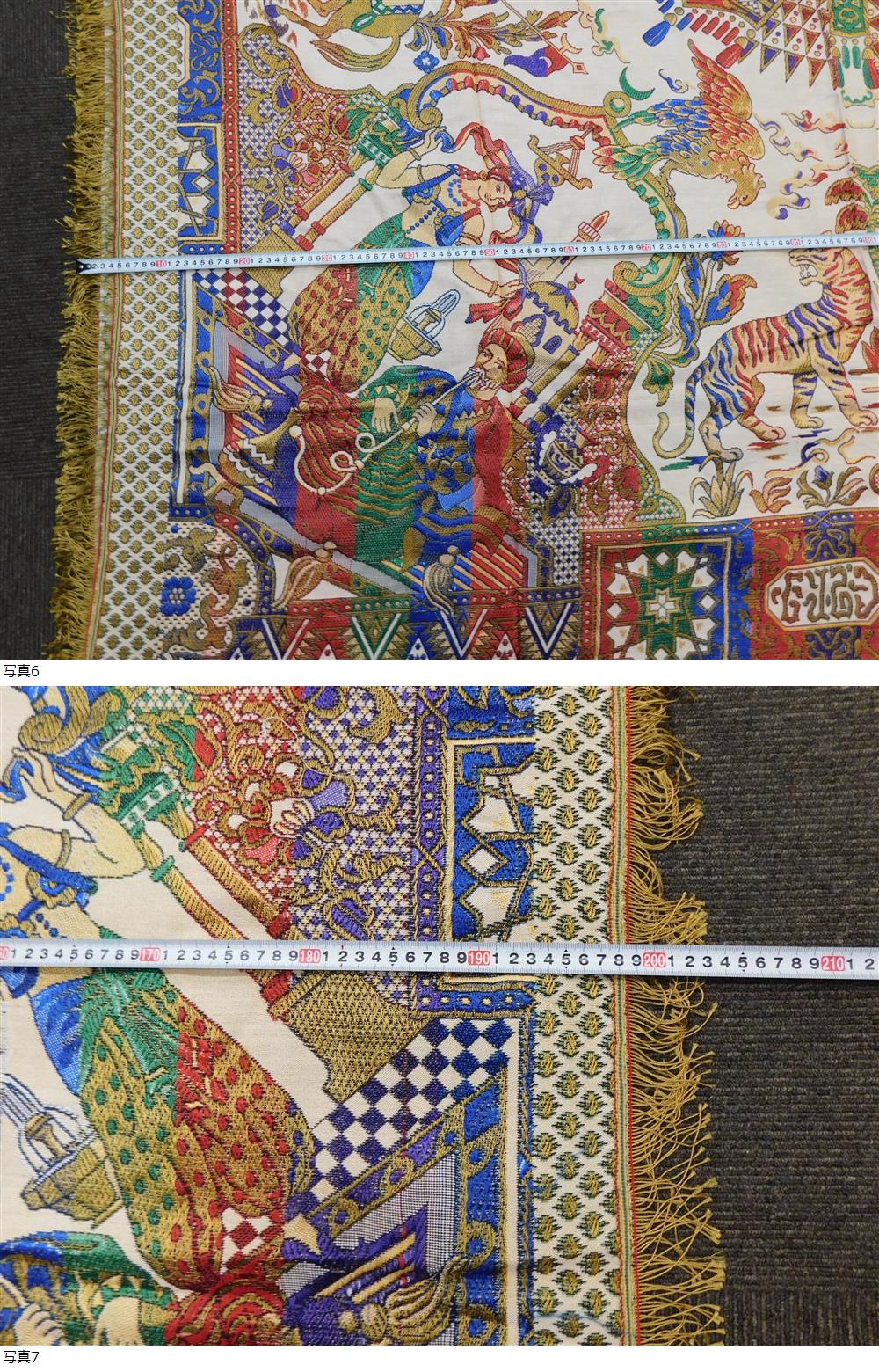 テーブルクロス ソファーカバー マルチカバー 大判 全長約250cm×約200cm 鳥 虎 犬 馬 人物柄 刺繍デザイン ジャンク品 激安1円スタート 收藏
