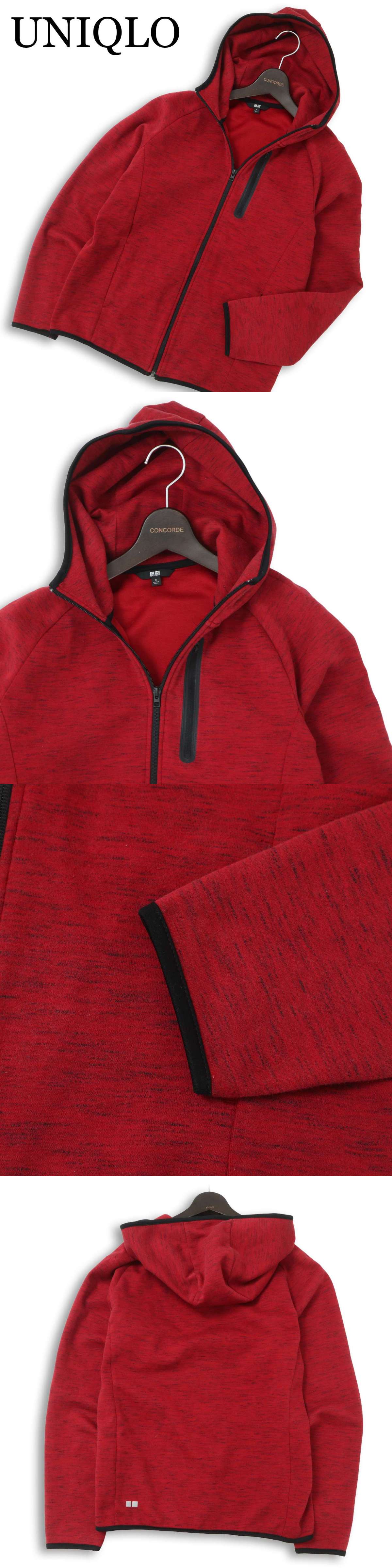 UNIQLO ユニクロ 通年★ ドライ ストレッチ ジップ スウェット パーカ Sz.M メンズ 赤 收藏