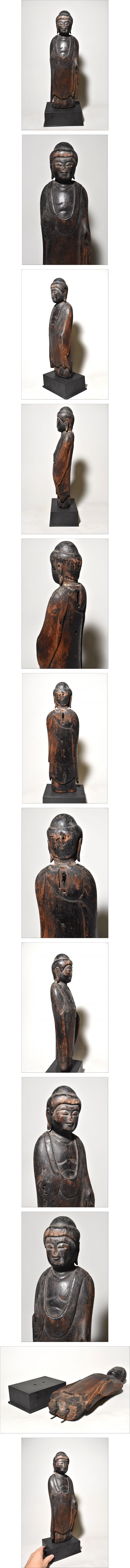 | 商品説明 | 「木彫如来像(鎌倉時代)」です。 シンプルな彫りの木取りの良い仏像で 中世(鎌倉時代)の作と見て良いでしょう。 顔や胸のツヤは、この像が撫で仏として 寺院等でまつられてきたことを物語っている様です。 欠損はありますが、穏やかな顔立ちです。 どうか、よろしくお願いいたします。