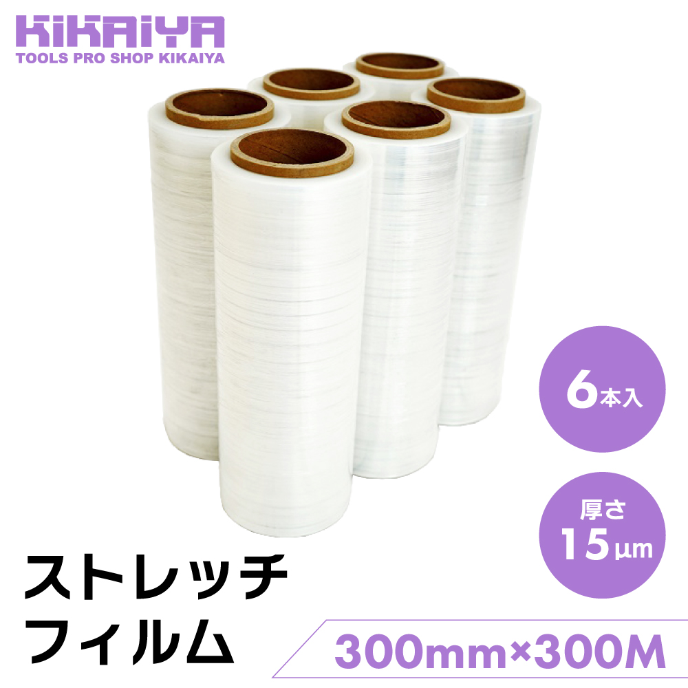 ストレッチフィルム 厚さ15ミクロン 幅300mm×300m巻 1箱(6本入)手巻き用 梱包 透明 養生 KIKAIYA 收藏