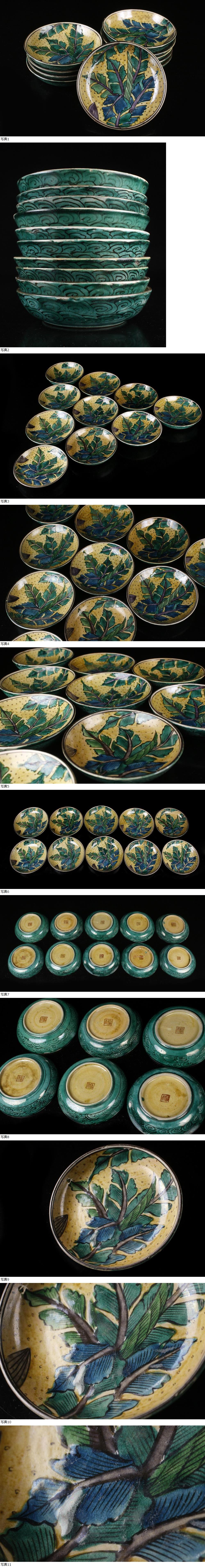 【LIG】古九谷 青手 万年青文皿 十客揃 角福 時代箱 コレクター収蔵品 2601135 收藏