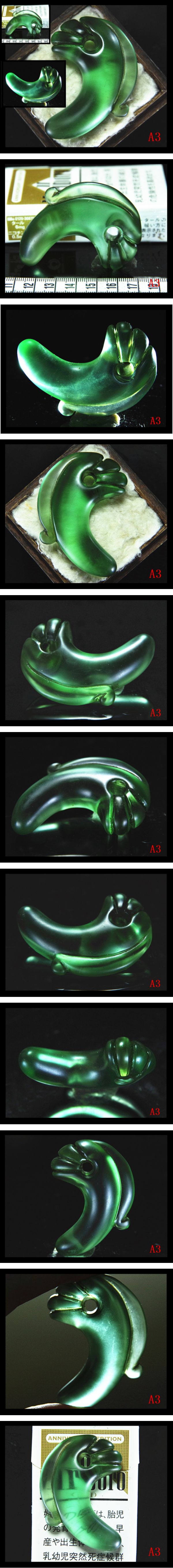 伝奈良県大和郡山地区周辺出土時代古玩★古美術 ★表面研磨良く★透光性姿形抜群★綺麗な★超美しい 上古★極希少超美しい薄緑色★瑠璃ガラス製 迫力★特大型6.2cm★独特な鬣付き丁字頭勾玉 深みのある上古色溢れる、見る角度によって色んな表情 ずっしりと重い素敵な造形★迫力な厚重存在感あり 御覧にように 大型鬣付き丁字頭 迫力造形、古時代竹穿孔上古技法 超美しい薄緑色神密幻的不思議な色合い★古い時代に伴う表面風化によるカセたりして状態、擦れ、エクボが見られますが、勾玉表面キメが細かく★古色と魅力に溢れるさま艶を持つ。 強光で見ると,全体的に光を拡散し★綺麗な神秘幻的不思議な緑色透明感,瑠璃ガラス特有な内部気泡が見られます。 ★ずっと見ていても飽きないほど美しい綺麗な形 穴内部には土錆が見られ周辺は玉擦れ痕が見られます。 極少なくその希少性も大きな価値となっています 大変貴重な迫力のあるお古玩★古美術品勾玉 時代古玩骨董★古美術品が好きの方是非この機会に ★商品表面の土錆、朱彩、汚れ、擦れ、傷、石目、石筋等が御座います。 古玩★古美術品の事、ご理解のある方のみ落札 下さい。 |