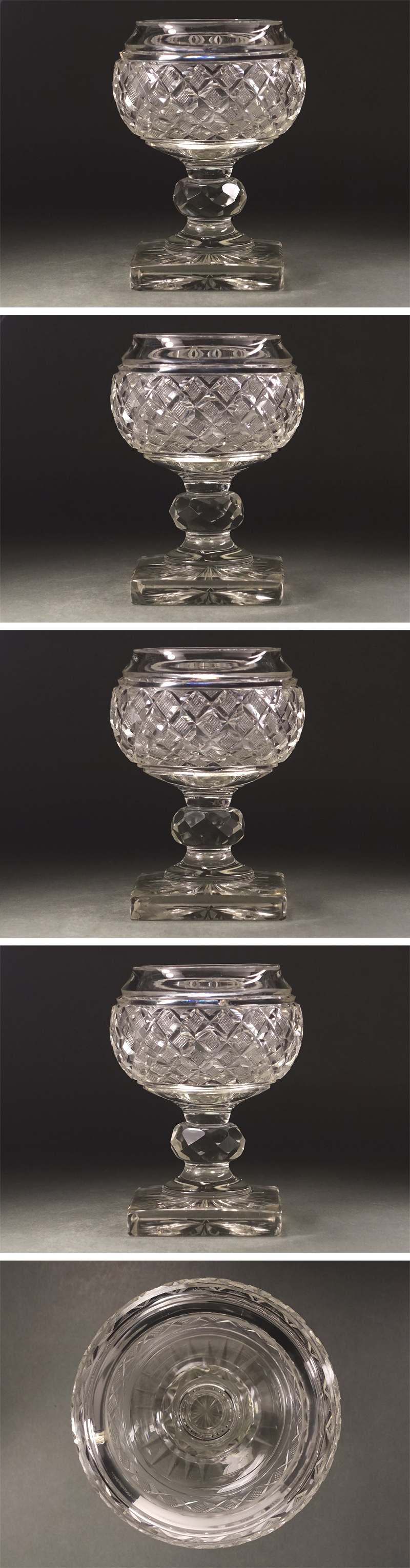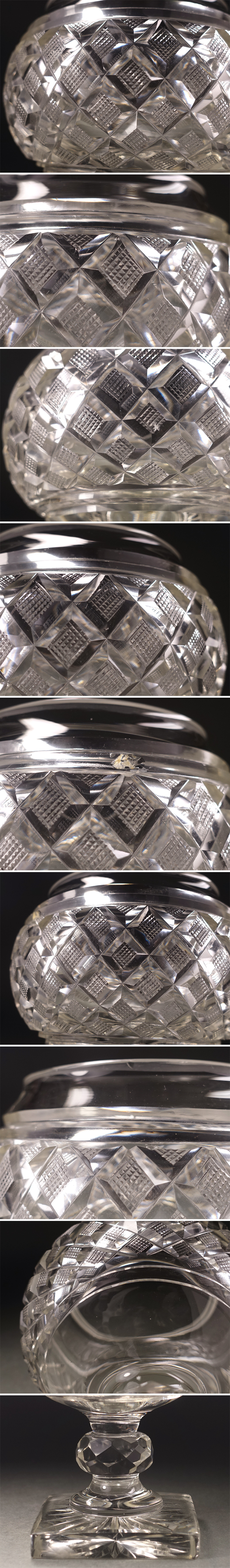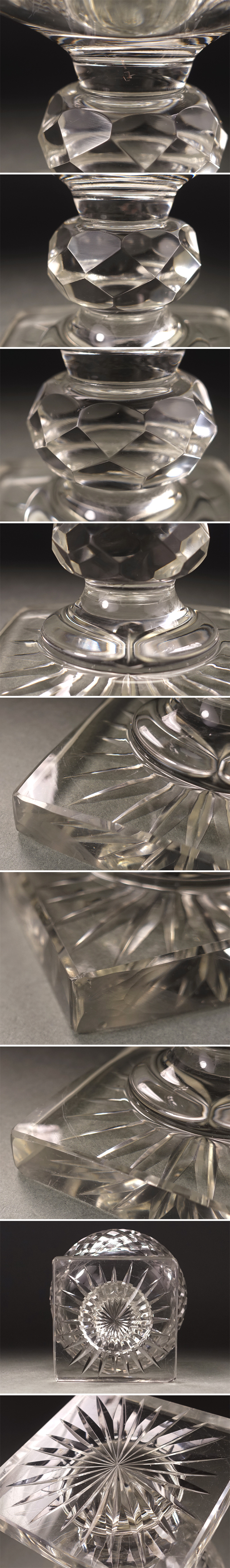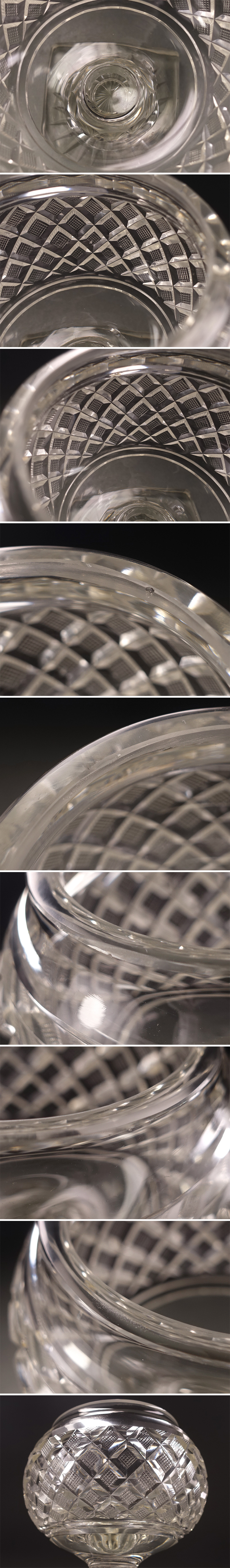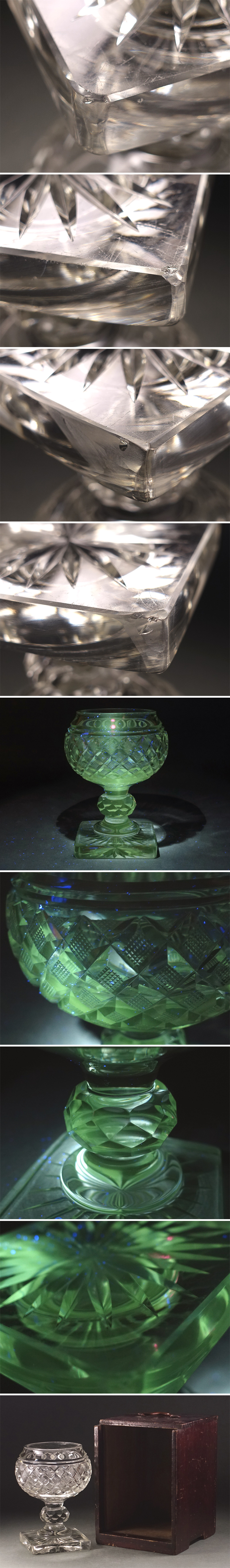∇花∇明治~大正期の舶来品 ギヤマンカットガラスグラス ゴブレット 義山切子矢来魚子文硝子杯 重厚846g 美しいウランガラス 收藏