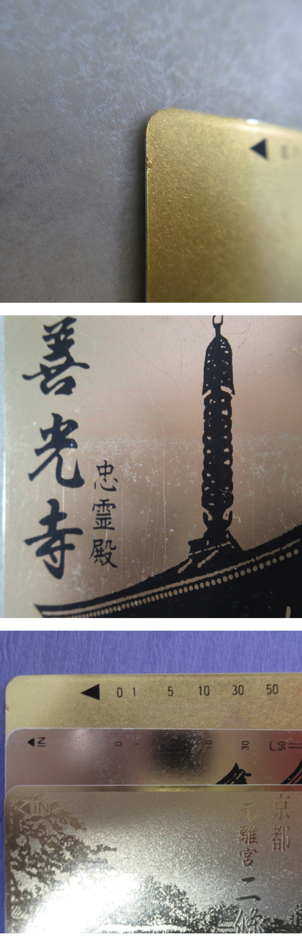 ○未使用 テレホンカード 京都 元離宮 二條城/金閣寺/善光寺 忠霊殿 50度数 テレカ 金箔/純金箔含む まとめて3枚セット【GM;MA0EJ00635 收藏
