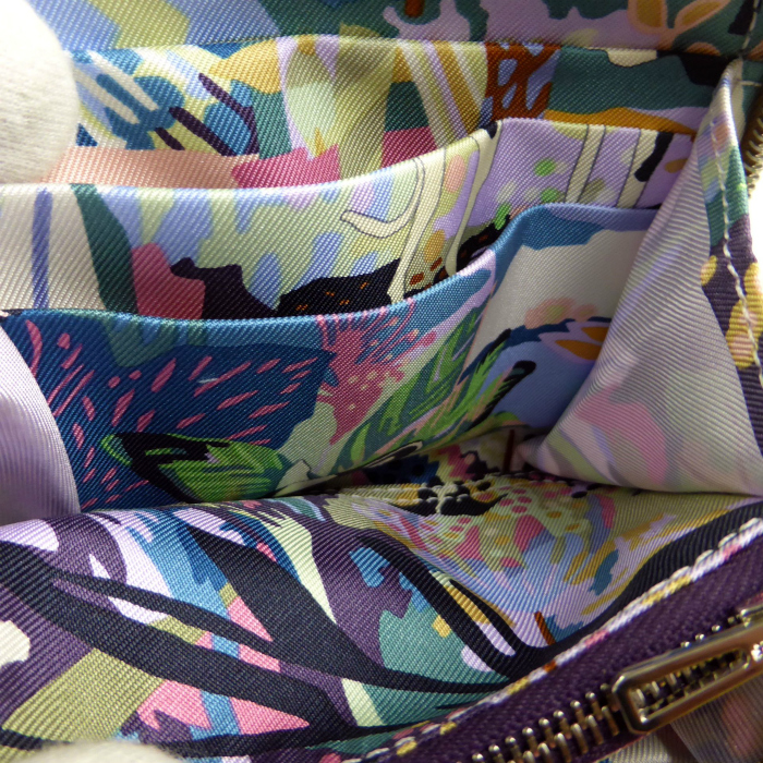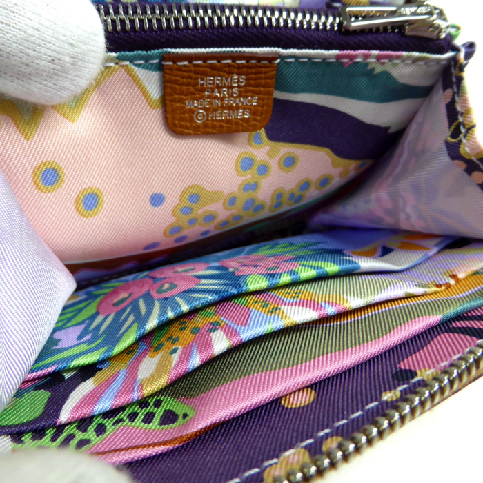 | エルメスの「アザップ」をそのままスモールサイズにしたモデル「アザップ シルクイン コンパクト」。 繊細な仕上がりとなった魅力的なお財布で、内側にシルクを用い、まるでスカーフの様な美しい仕上がりです。 スクエアなボディの内側には仕切りとしての機能も兼ね備える小銭入れや、6枚のカードが収納できるポケットが備わったコンパクト財布。 しっかりとしたカーフの感触を楽しめる上質で繊細な凹凸のある素材と、開けるたびに目に飛び込む鮮やかなシルク柄で優越感を味わえるお財布です。 |