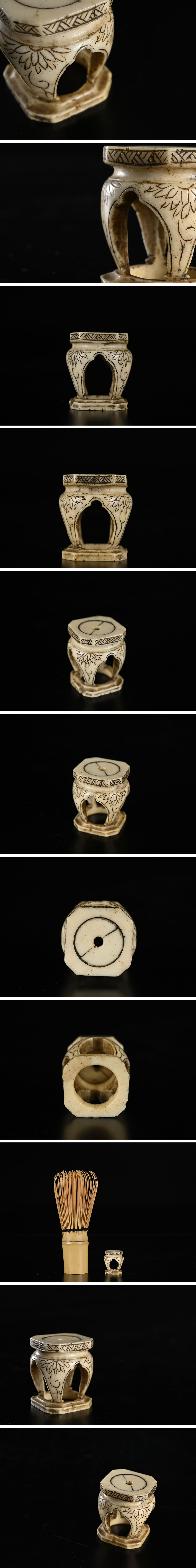| 時代 鹿角製 花彫刻 高卓形根付 高さ 約2,5cm / 根付 | ||||||||||||||||||||