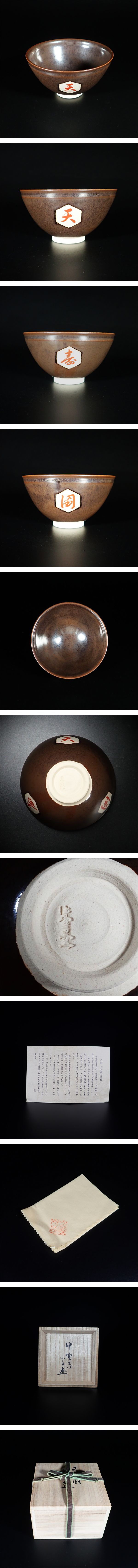 ■ 商品説明 中宮寺窯にて造られた「天寿国茶碗」でございます。 本作は、聖徳太子の理想世界を描いた「天寿国曼荼羅繍帳」を意匠の源とし、中宮寺ゆかりの世界観を写し取った一碗。 落ち着いた土味に、気品ある佇まいが印象的です。 箱には中宮寺門跡・日野西光尊師の箱書が認められており、その由緒の確かさがうかがえます。 歴史的背景を有する、格調高い茶道具と言えるでしょう。 |
