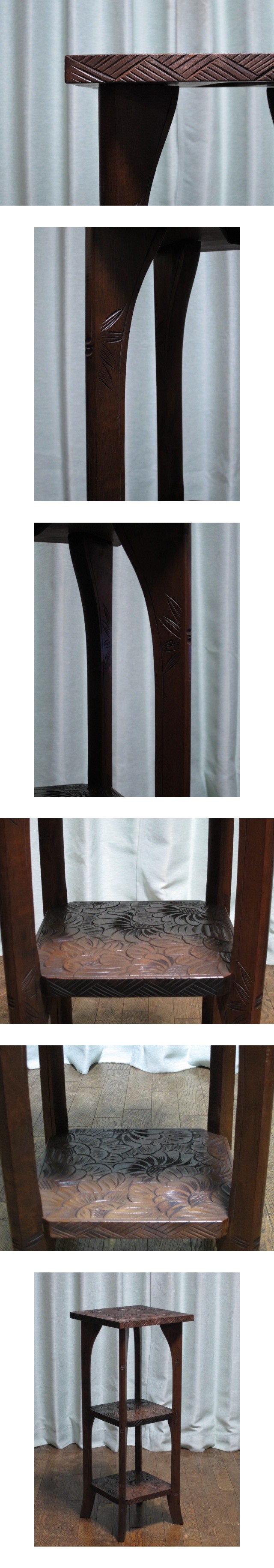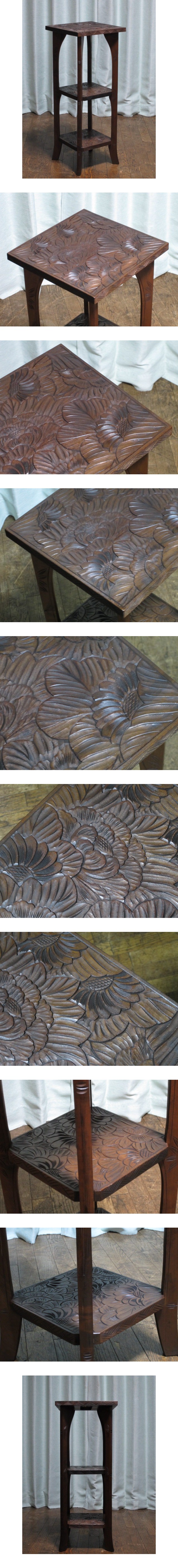 逸品 伝統工芸 日光彫り 彫刻 花詰図 三段 民芸 サイドテーブル 花台 飾り台 コンソール 和家具 民芸家具(検)軽井沢彫り/松本民芸 收藏