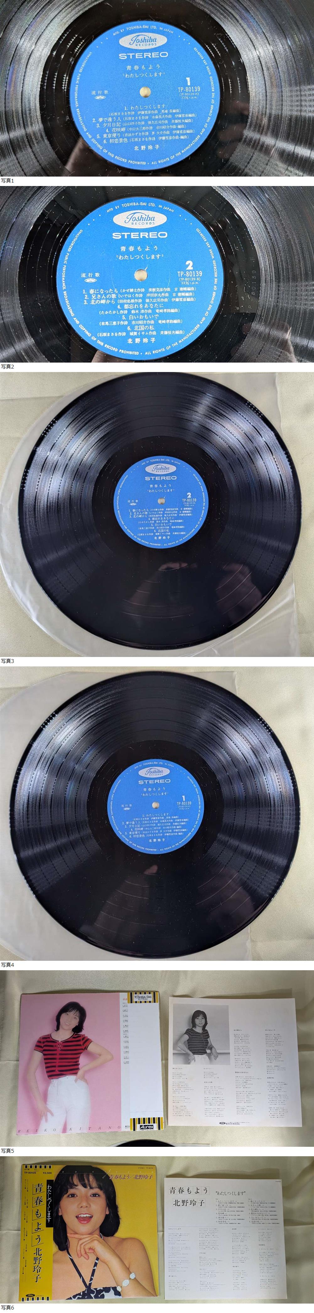 | レコード LP 北野玲子 青春もよう わたしつくします TP-80139 帯 管9007 |