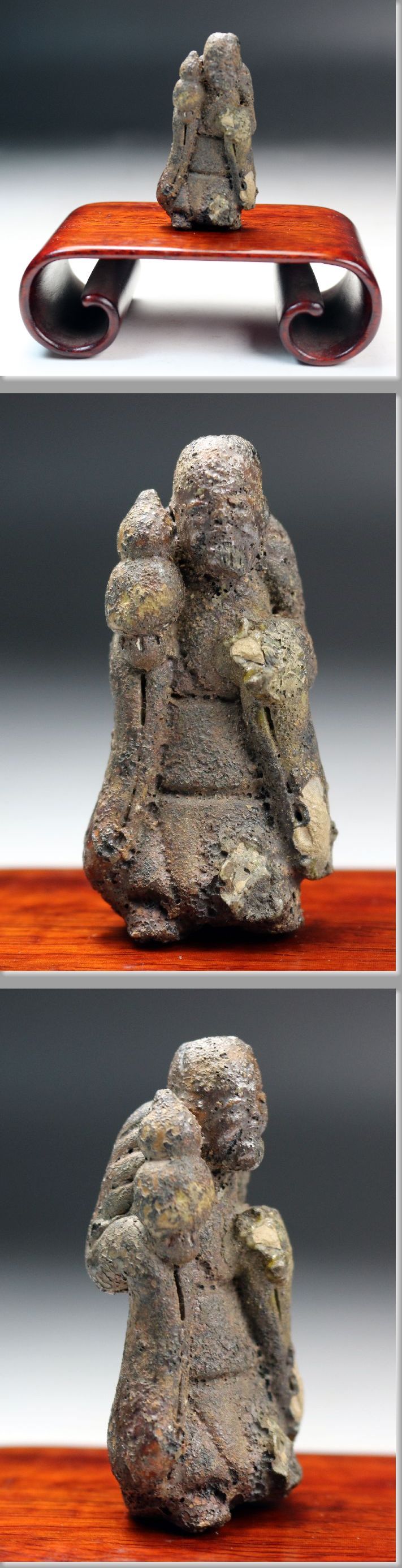 ■■ 古備前 胎内仏 寿老人立像 桐箱 飾台付属 ■■