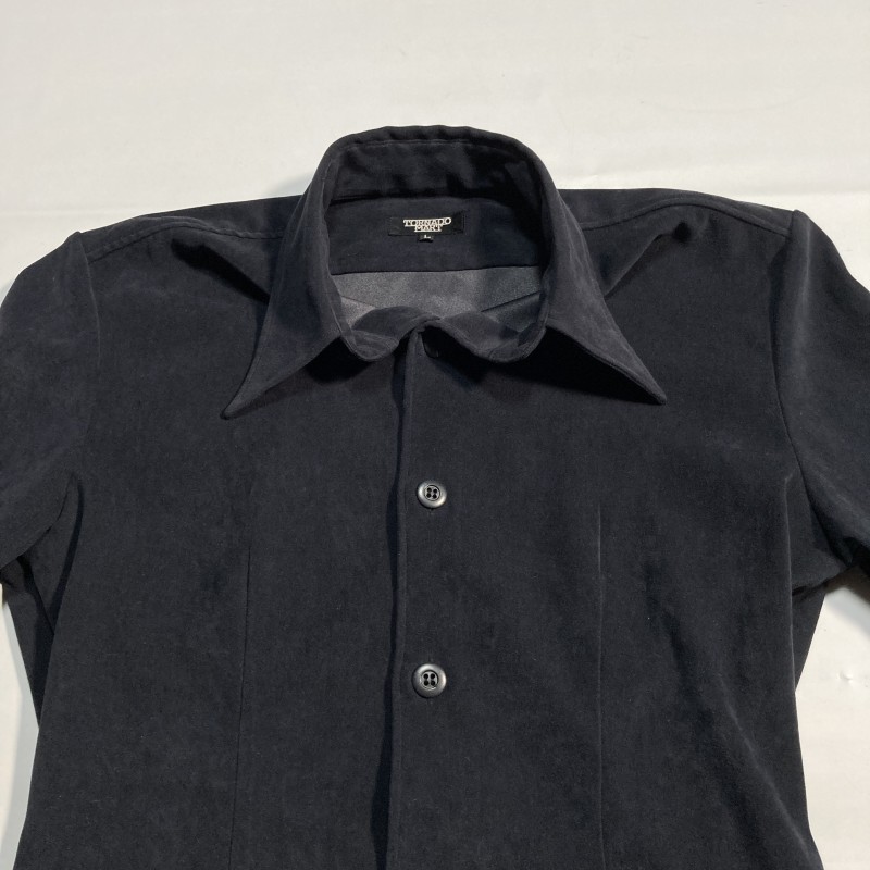TORNADO MART★90s 00s archive vintage★最初期★ストレッチ Fスエード 長袖シャツ ジャケット フェイクレザー 黒 L トルネードマート Y2K 收藏