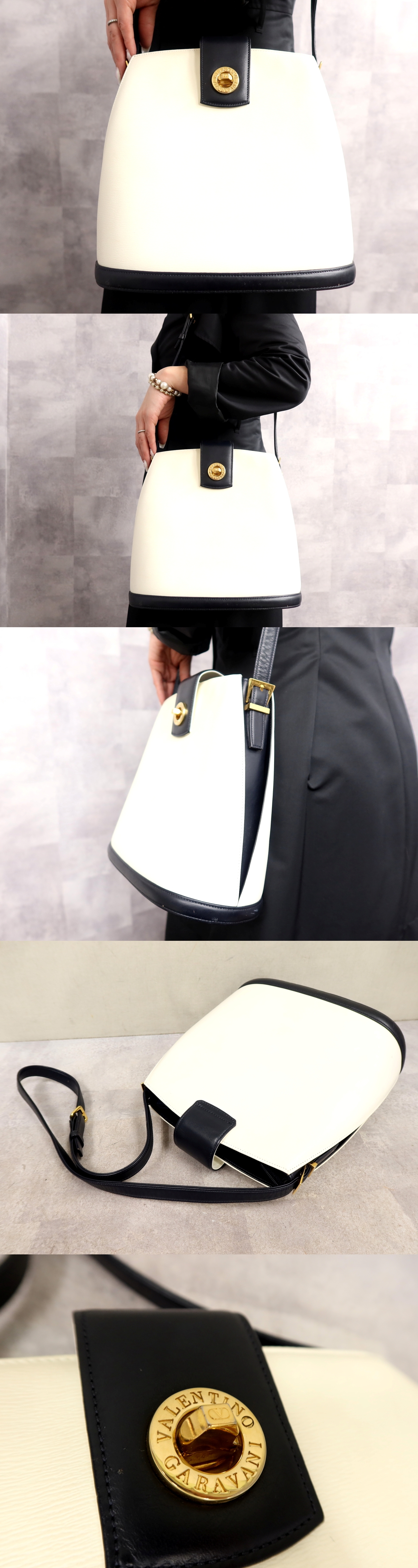 ●超美品●VALENTINO GARAVANI ヴァレンティノ ガラヴァーニ●ターンロック●カーフ レザー●ショルダー バッグ●白 ネイビー●B5●Js65895 收藏