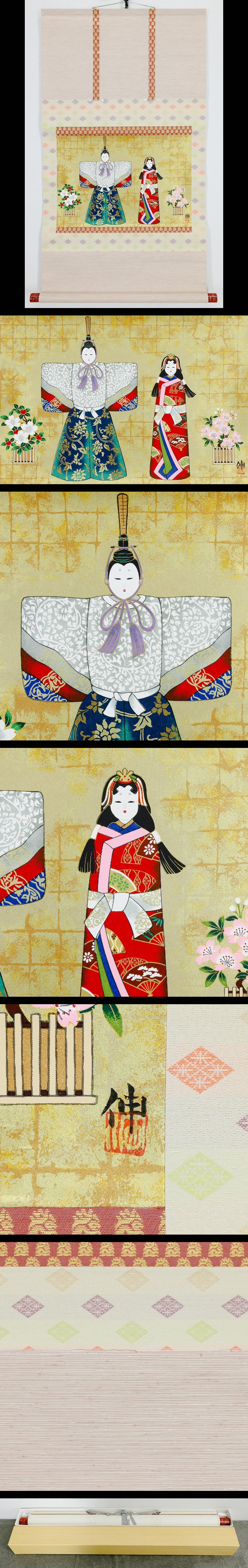 【WISH】在銘:伸「立雛」シルクスクリーン 掛軸 友禅紙(金箔・金泥仕様) #26020059 收藏