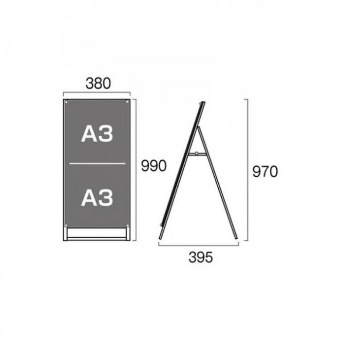 | 仕様 | 本体フレーム:アルミ押出し フレーム・化粧ビス:アルマイト仕上 屋内・屋外可(ポスターに耐水加工が必要) ポスターサイズ:W297×H841mm |