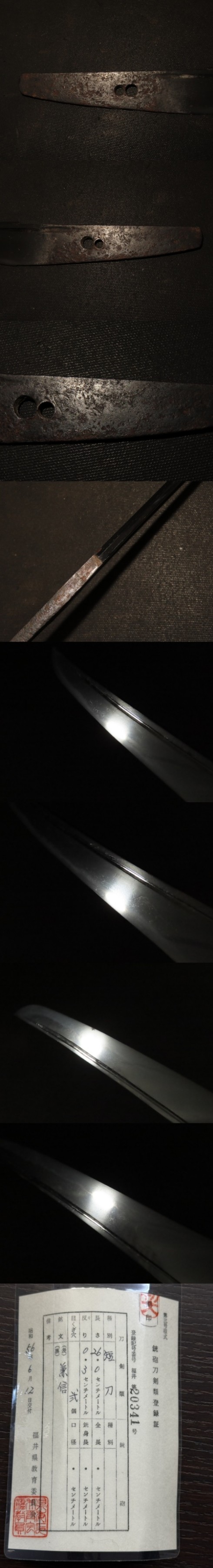 短刀 平造短刀 兼信 白鞘 室町 木はばき 41×刀身26×反0.3×元幅2.5×元重0.4×先重0.3cm 260g 收藏