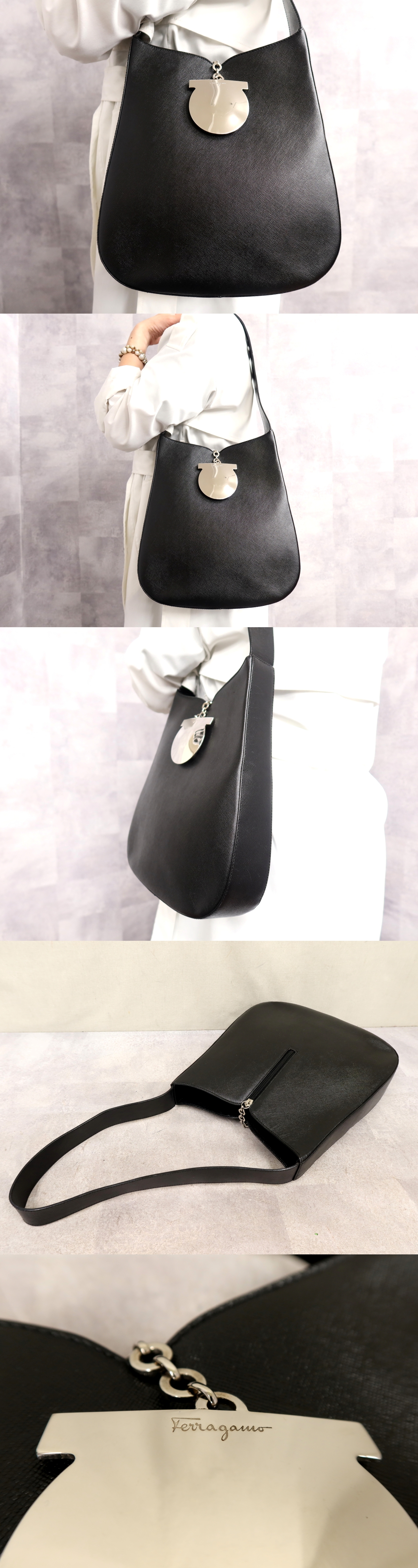 ●超美品●Salvatore Ferragamo フェラガモ●ガンチーニ●カーフ レザー 本革●ワンショルダー バッグ●黒●シルバー金具●肩掛け●Js67102 收藏