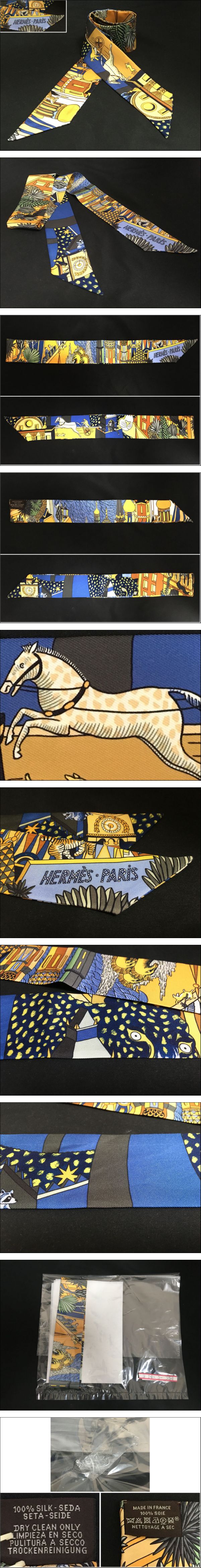 美品!エルメス HERMES アニマポリス ツイリー スカーフ シルク100% ヤン・バイトリク 2019年秋冬 クリーニング済 ヘアアクセサリー 收藏