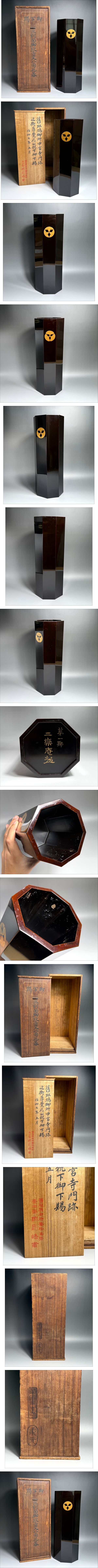 | 商品説明 | 御下賜 家紋六角花器 近衛尊覚尼公 『斑鳩御所中宮寺門跡』華道 二楽庵 家元 ◆商品説明◆ 本品は、京都市内の旧家解体時にお譲り頂いた品物です。 花器に花押が二箇所御座います。 写真をできるだけお撮りしております。 よくご覧になってからご入札お願い致します。 ◆状態◆ 花器内側にアタリや細かな傷が御座います。 写真にてお確かめ下さい。 ◆サイズ◆