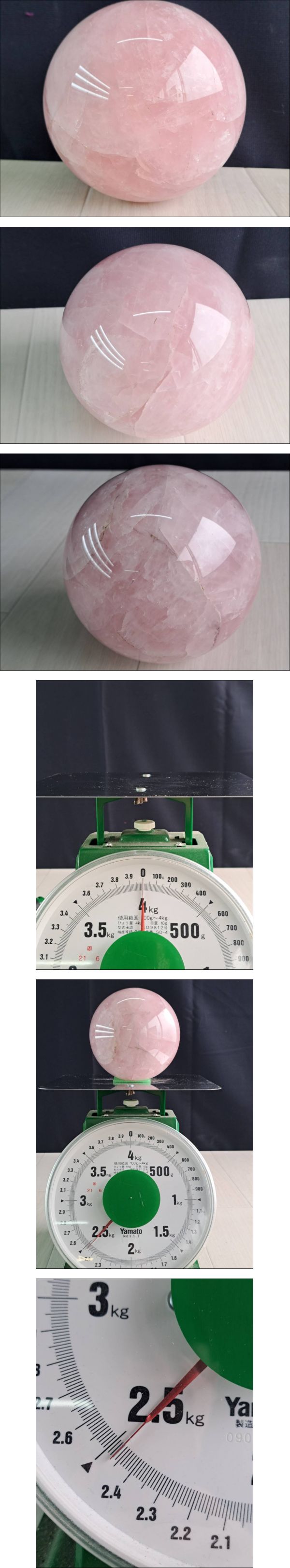 天然石 ローズクオーツ丸玉 約2.5kg 直径約11cm 鑑賞石/盆石/水石/輝石/宝石/ジュエリー/パワーストーン/天然石 收藏