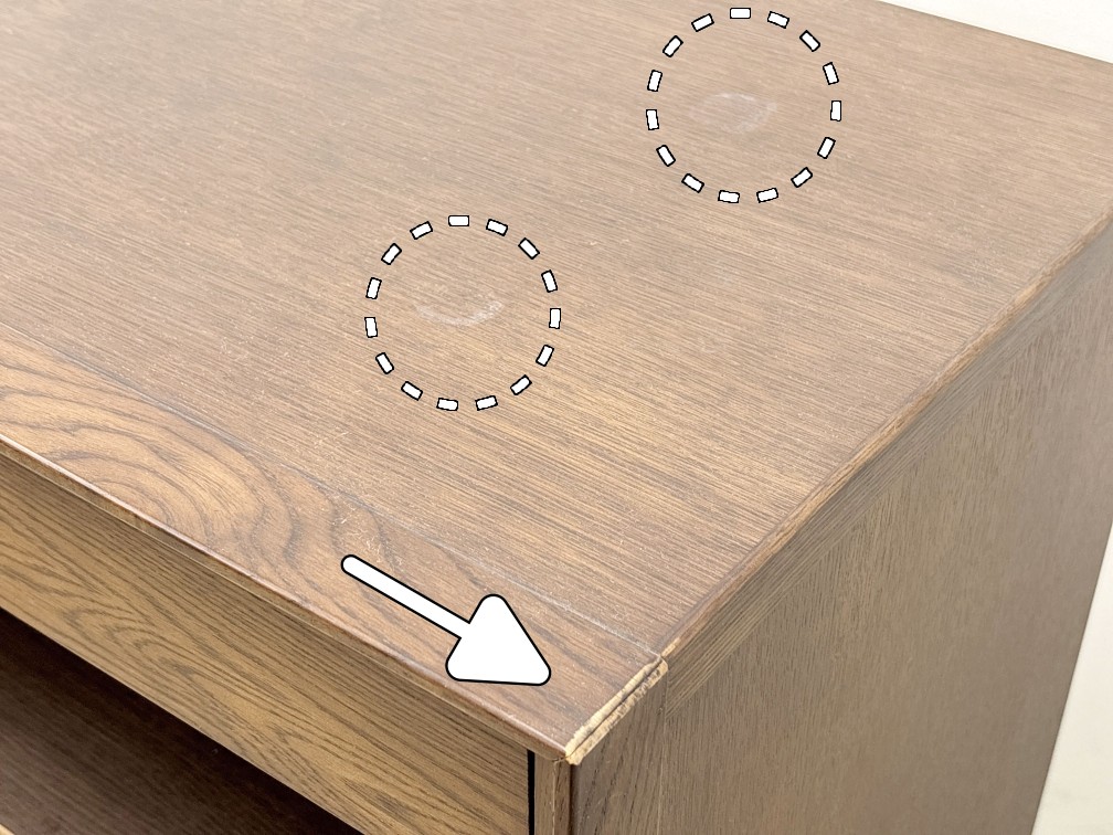 こちらは カリモク karimoku QU2065MK サイドボード キャビネット です。 中古品です。 【カリモクについて】 カリモク家具は1940年に愛知県刈谷市で創業した国内製造家具メーカーです。 「100歳の木を使うなら、その年輪にふさわしい家具を作りたい」との思いで、家具づくりを行っています。 日本で最もスタンダードな家具メーカーのひとつです。 今回はそんなカリモクの、キャビネットが入荷しましたので出品致します。 こちらのキャビネットは、幅が69cmあり、天板が広々しています。 カラーはウォールナット色になっており、高さ110cmなので配置するだけでも十分な存在感があります。 引出しは上部に2杯、下部に2杯備えており、下部はソフトクローズ仕様のため、 女性でも開けやすく、閉めるときの音も抑えられるため、ファミリーに優しい設計です。 天板下には棚板収納があり、おそらくは本来はFAX台としての使用を想定されているため、裏にはケーブル孔が空いており、 モデムやルーターなどの通信機器、小ぶりであればテレビ・録画機器などのAV機器などを置くことも可能です。 見た目もさることながら、実用性も兼ね備えた隙のないデザインとなっています。 【コンディションについて】 コンディションにつきましては以下の画像も併せてご覧ください。 【引出し内部の様子】 【棚ダボ 樹脂の割れ】 【天板 上部の丸シミ痕 / 角のスレ】 使用感に伴い、上記のような若干のダメージなどはありますが、 使用を損なうレベルの割れ、キズなどはなく、キャビネットとして問題なく動作致します。 まだまだ長きにわたってお使いいただけるお品です。 シンプルな見た目にやさしい機能性と、隠れた魅力を併せ持っています。 ナチュラル調の家具がお好きな方におすすめなお品です。 是非この機会にご検討ください。 皆様のご入札をお待ちしております! 再良市場の他のお品物はこちらから!