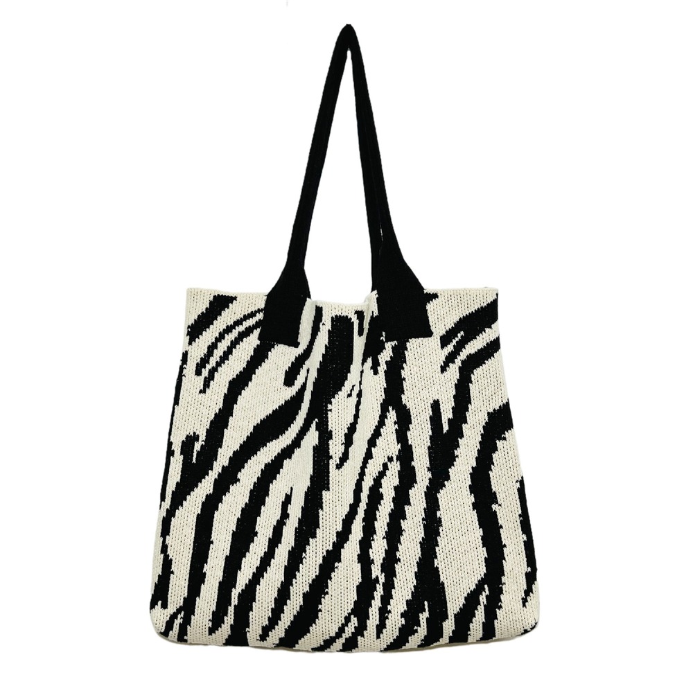 ☆ ブラック×ホワイト ☆ ニットバッグ トートバッグ 大容量かばん ニットバッグ 大きめ トートバッグ レディース 收藏
