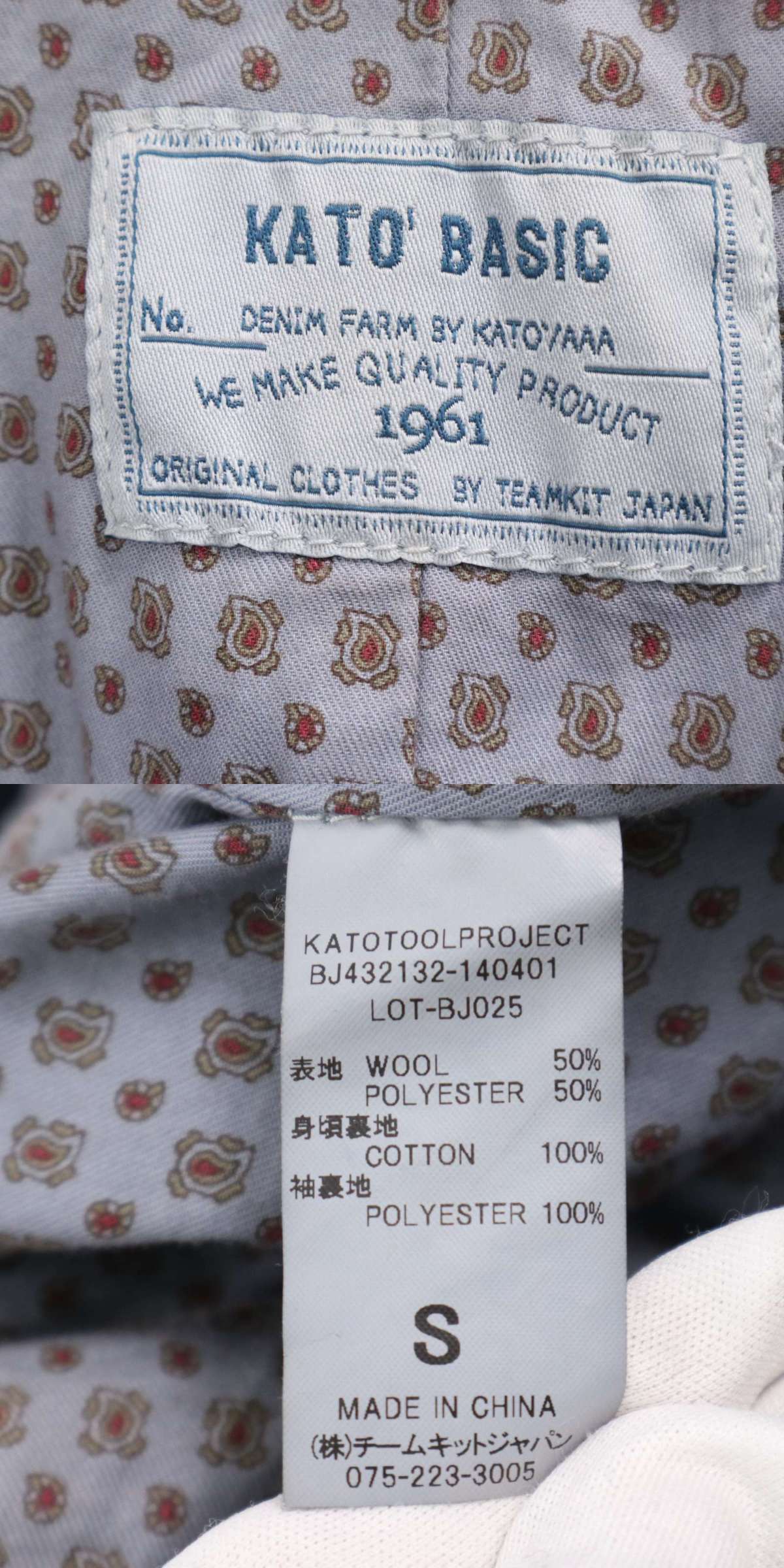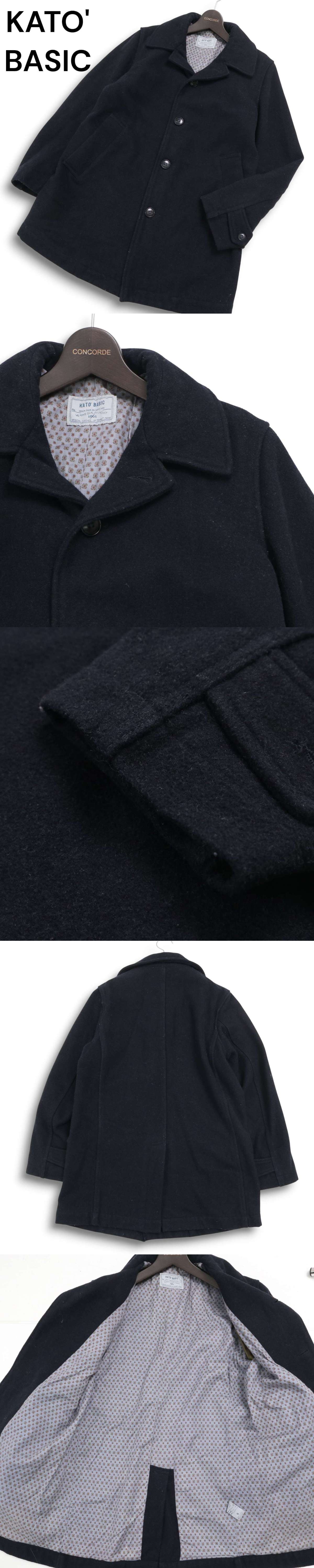 KATO BASIC カトー 秋冬★ メルトン ウール ステンカラーコート Sz.S メンズ 紺 ネイビー 收藏