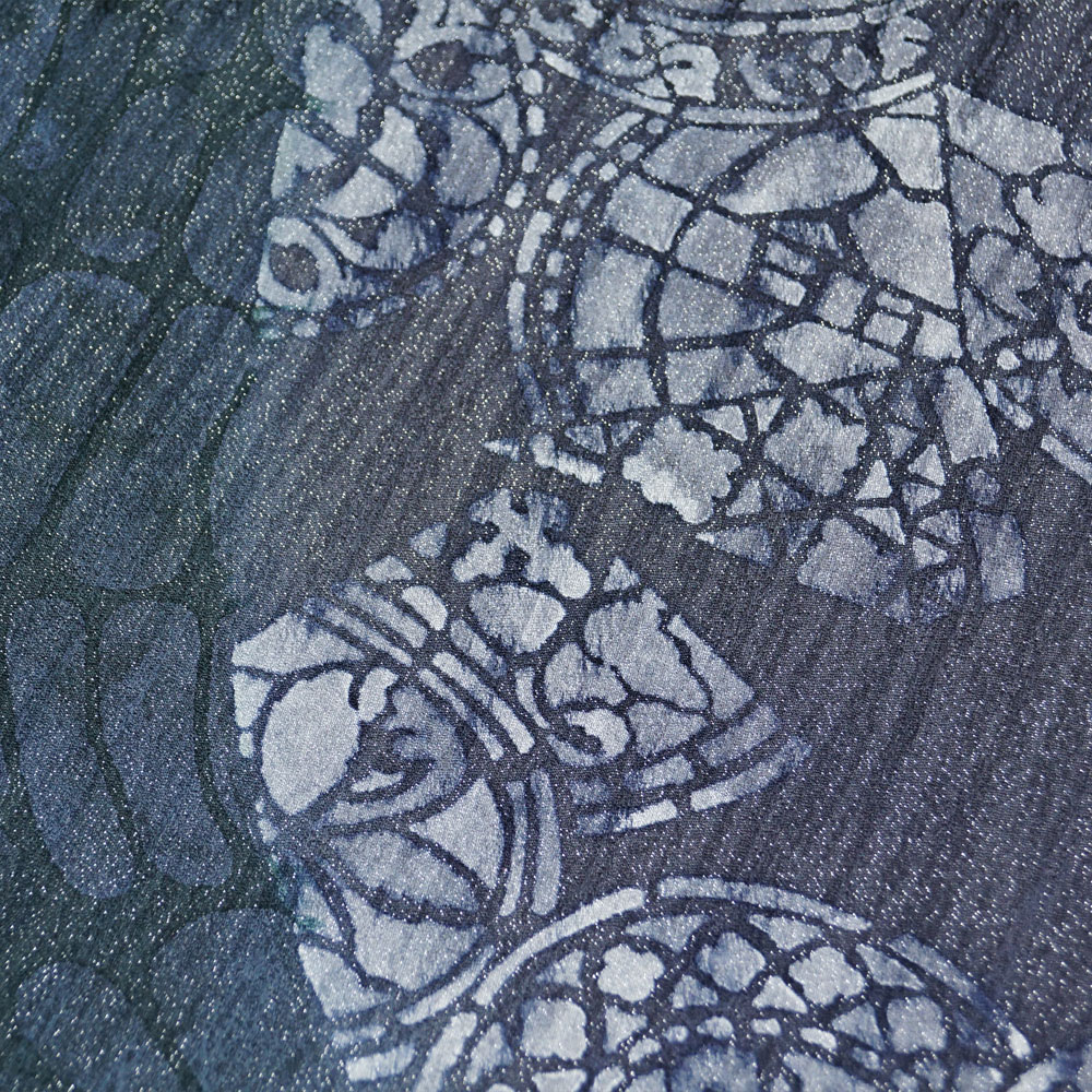 | 商品 説明 | 薄っすらと銀通しの施された源氏鼠・仙斎茶色系の染め分け地に幾何学的な模様が染められた洒落袋帯です。 帯裏生地は葡萄鼠色系の地にライン模様が地織されております。 |