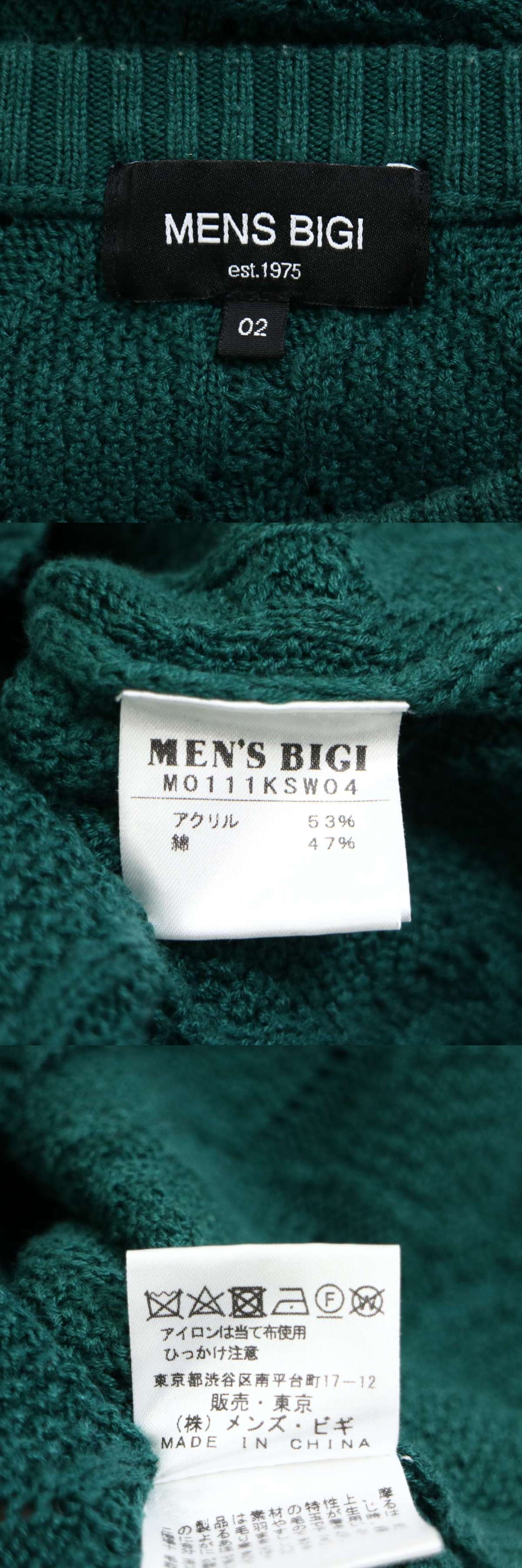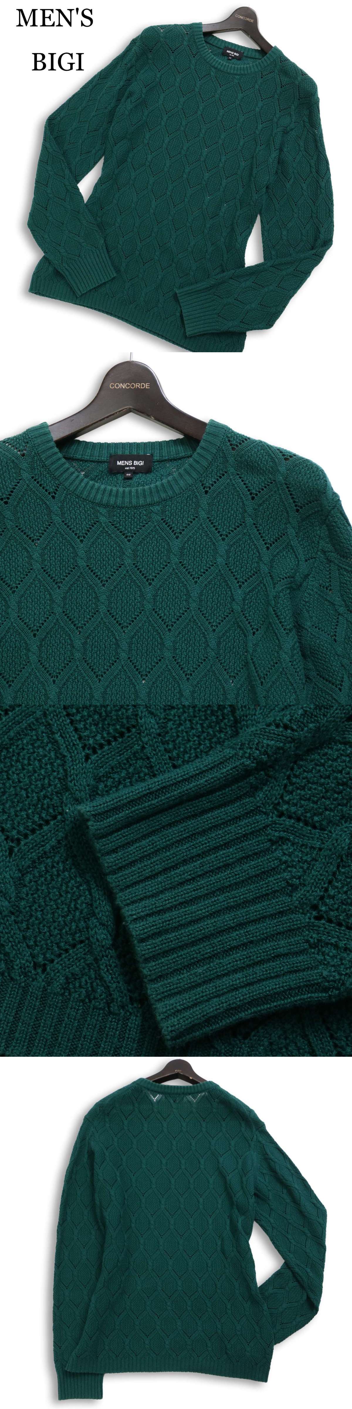 MENS BIGI メンズビギ ケーブル編み★ ダイヤ柄 セーター クルーネック ニット Sz.2 メンズ 收藏