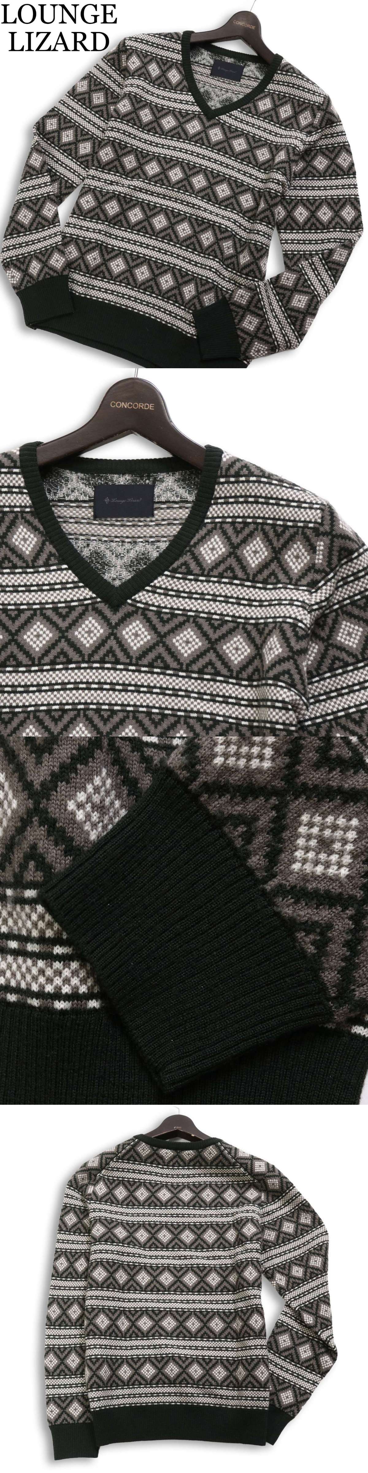 LOUNGE LIZARD ラウンジリザード 秋冬 ウール100%★ ノルディック フェアアイル ボーダー セーター ニット Sz.2 メンズ 收藏