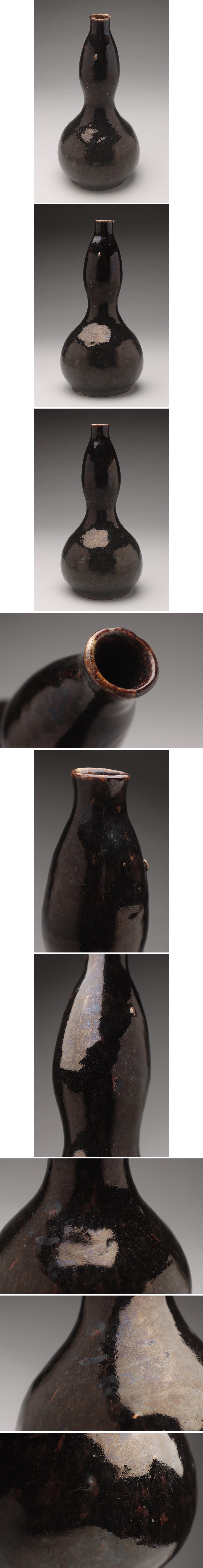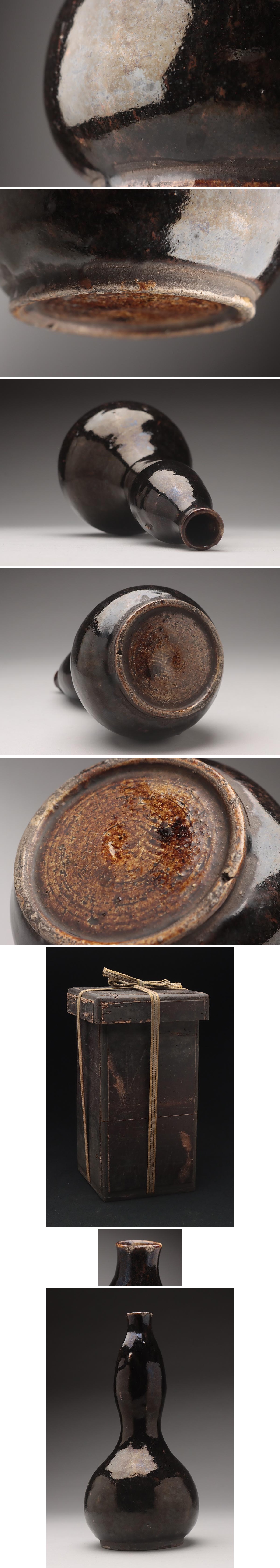 | ◆ 時代古陶 黒釉瓢形花瓶・黒褐釉葫芦瓶 高23.7cm 木箱附・花入・花生 古美術品 検)朝鮮 黒高麗 ◆
