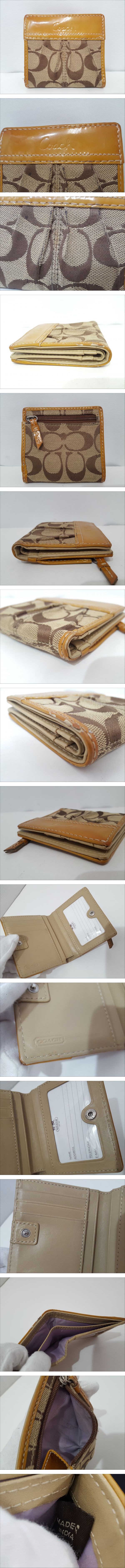 時間帯指定や日付の指定も出来ません。 補償、日付、時間帯指定等がある配送をご希望の方は、 ゆうパックか佐川急便を選択して下さい。 ※佐川急便の場合、離島など別途中継手数料がかかる地域が御座います。 その場合はお振込みを追加でお願いする場合が御座います事、 事前にご了承の程、宜しくお願い致します。 [商品名] 1円スタート COACH コーチ シグネチャー 二つ折り財布 [サイズ] 高さ約9cm, 横約9.5cm, 厚さ約2cm [素材] 本革レザー×キャンバス他 [カラー] ベージュ系 [仕様] ドットボタン開閉仕様 お札入れ×2 ファスナーポケット×1 カード入れ×3 フリーポケット×4 [状態] パテントレザー部分に変色、ハガレ箇所、キャンバス部分にスレ、 ファスナーポケット内に汚れが御座いますが、その他は良いと思います。 付属品は写真のものが全てです。 記載の無い状態がある場合も御座いますが、写真でご判断下さい。 上記状態をご理解頂ける方のみご入札の程宜しくお願い致します。 [状態ランク] B