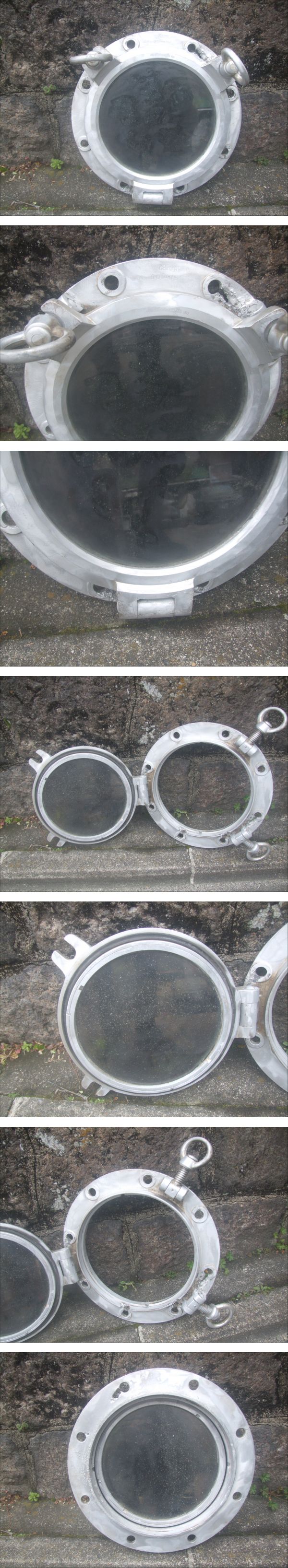 | ☆船舶のアルミ製丸型ガラス窓 時代等分かる限りご覧になり判断ください。 サイズ 直径38㎝ 現状品渡しでお願いします 他にも色々出品していますのでご覧下さい。 | |||