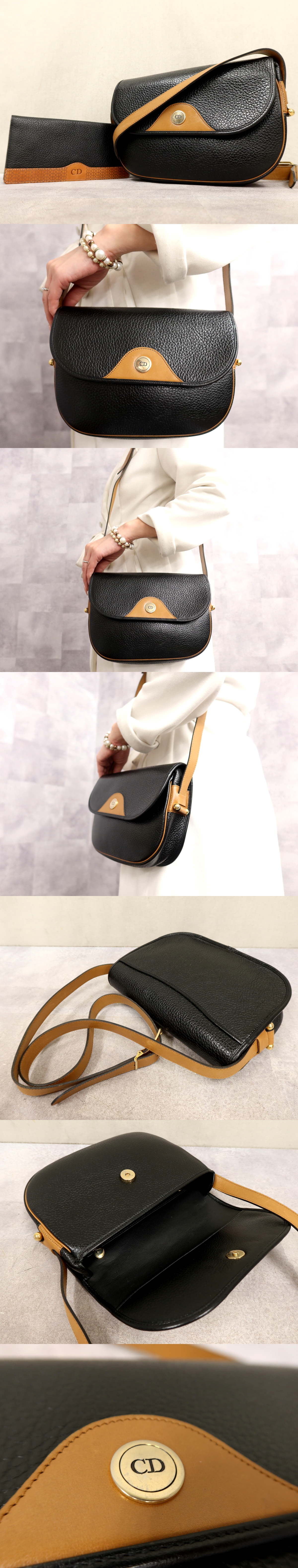 ●超美品●クリスチャン・ディオール●2点セット●カーフ レザー 本革●財布 ショルダー バッグ●黒 キャメル●G金具●斜め掛け●Js65401 收藏
