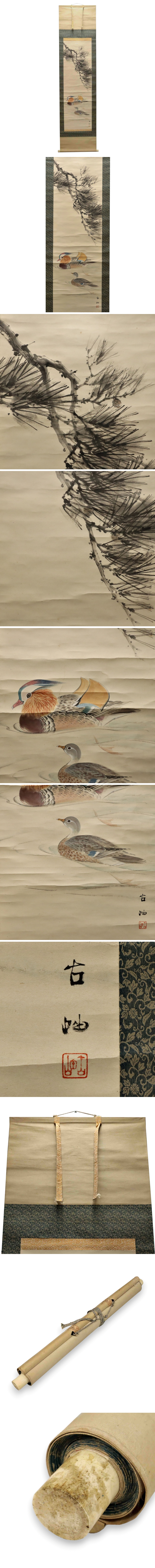 真作保証 佐藤古岫 おしどり図 紙本 備後 掛軸 書画 骨董品 美術品 8065sbzN 收藏