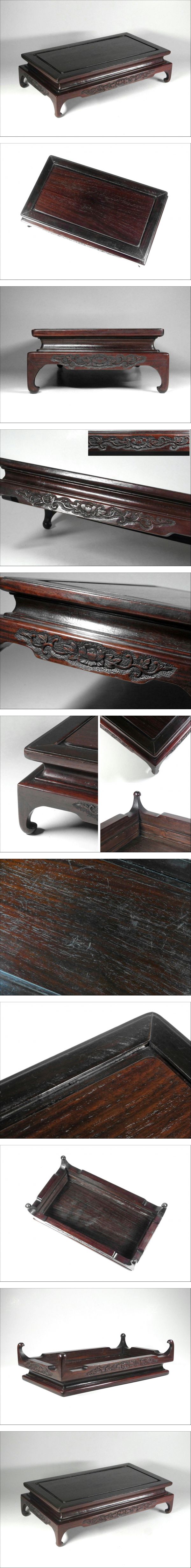 | 商品説明 | 中国美術 唐木 透かし彫 幅39.5cm 紫檀 香炉台 盆栽台 花台です。 時代の汚れ・擦り傷は御座いますが、ガタツキはありません。 時代の汚れ・擦り傷・多少のガタツキは御座いますので御了承下さい。 とても形・彫刻の良い、見映えのする唐木花台です。 [サイズ] 横幅39.5cm 奥行23cm 高さ10.5cm 重量1534g |