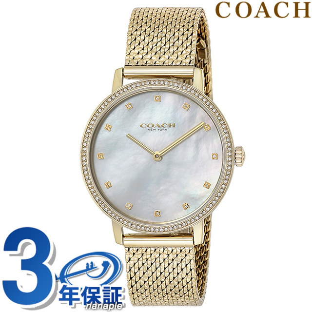 コーチ オードリー クオーツ 腕時計 レディース COACH 14503359 アナログ ホワイトシェル イエローゴールド 白 收藏