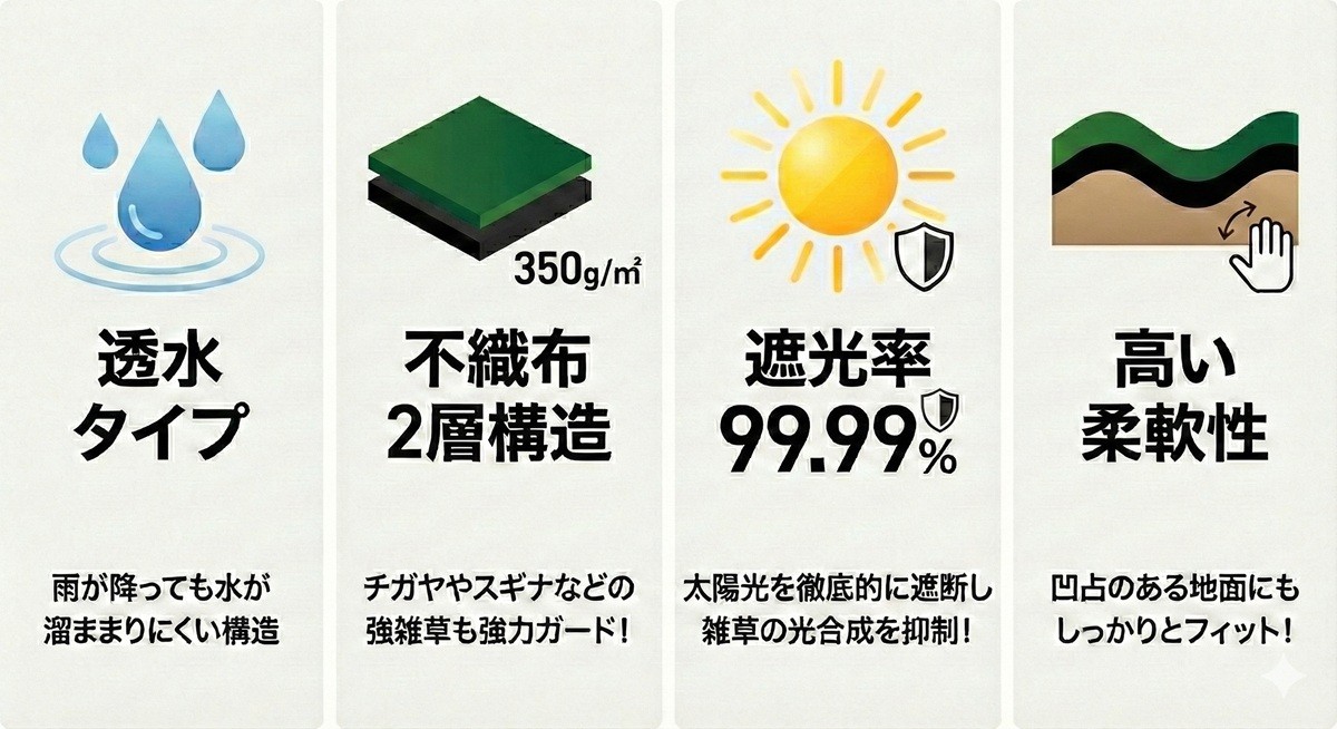 ※防草効果・耐用年数は使用環境や施工方法により異なります。