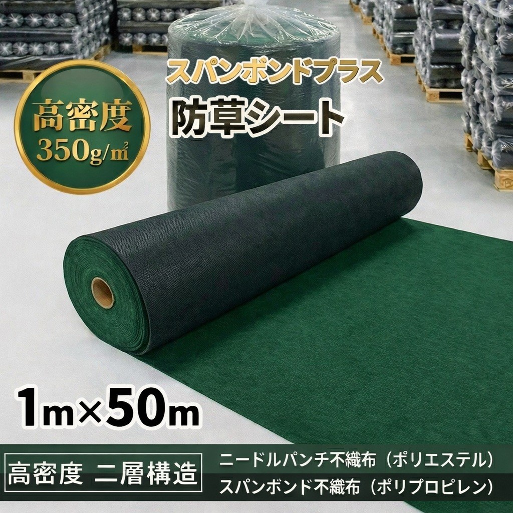 防草シート2層構造( 350g/㎡【深緑×黒 1m×50m巻】NP+S)超厚手ニードルパンチ&スパンボンド 【ダークグリーン×ブラック】(4) 收藏