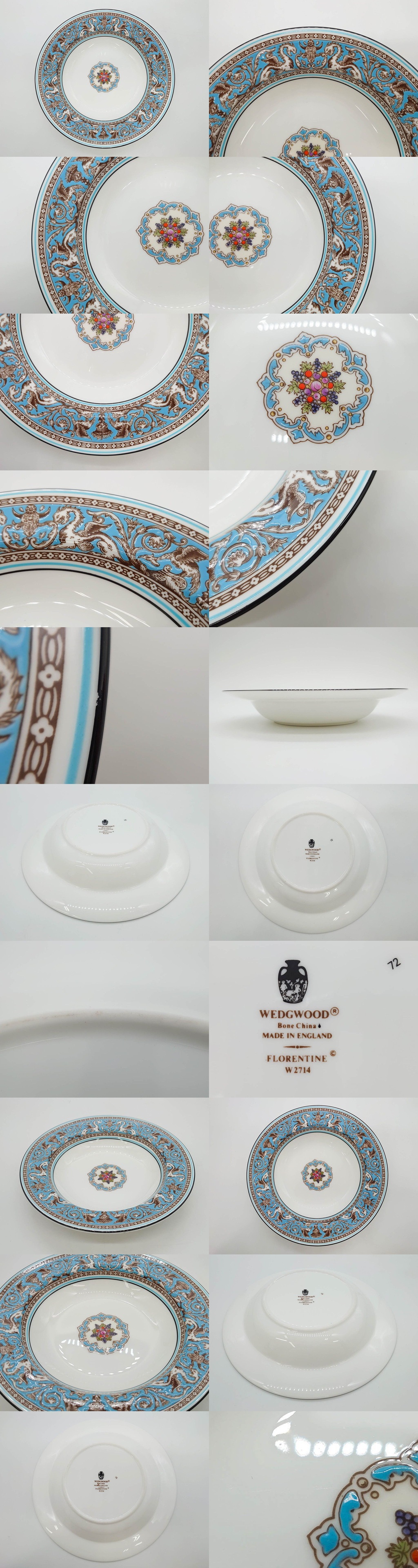 R-081223 イギリス WEDGWOOD(ウェッジウッド) FLORENTINE TURQUOISE(フロレンティーン ターコイズ) プレート4枚セット(スーププレート) 收藏