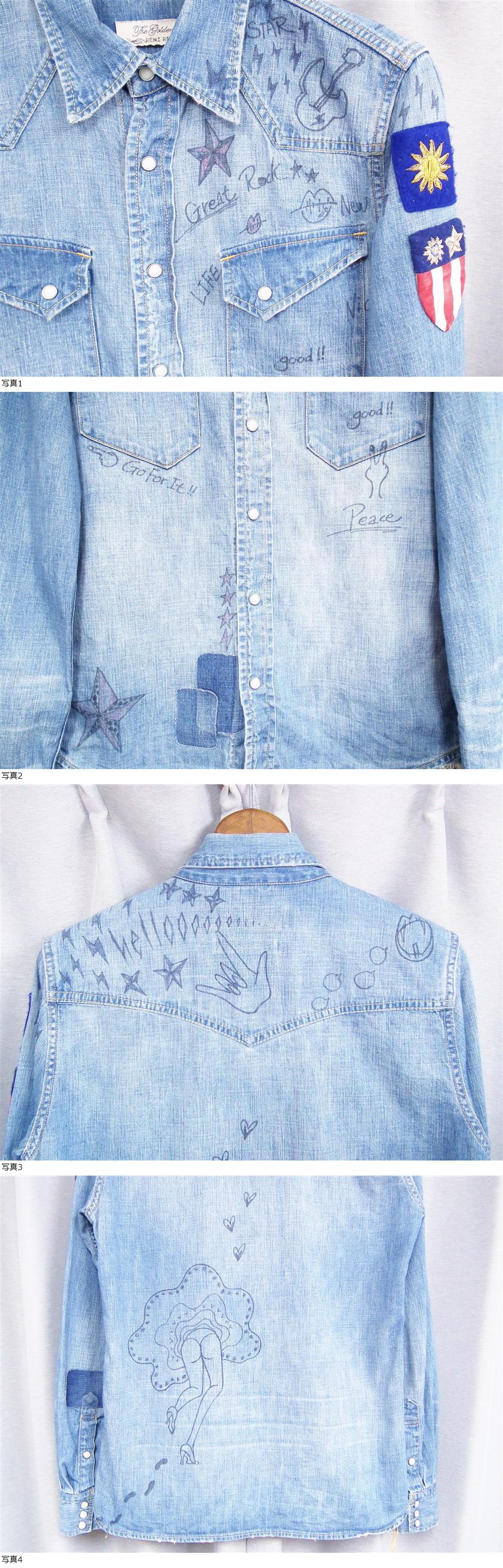 ◆販売店限定ハイエンドモデル◆REMI RELIEF レミレリーフ デニム ウエスタンシャツ 落書き ワッペン パッチ カスタム 90s カリフォルニア 收藏
