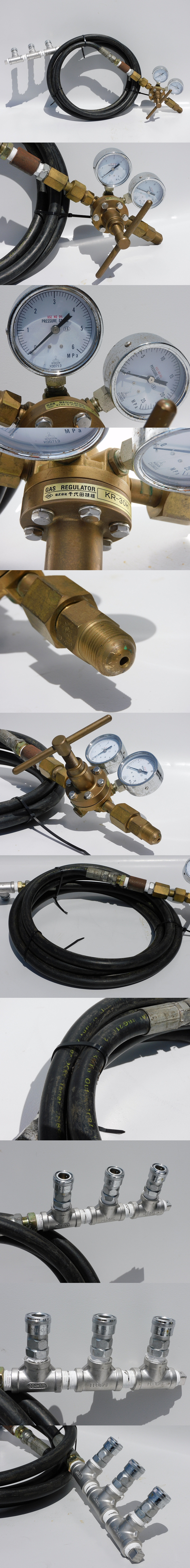 【e3768/送料無料】千代田 高圧用圧力調整器 ガスレギュレーターKR-30H+極太ホース+エアーソケット3連分岐 中古 状態良好 溶接?用途不明 收藏