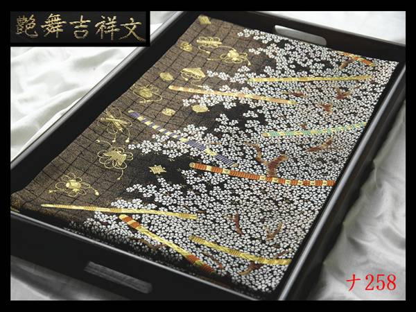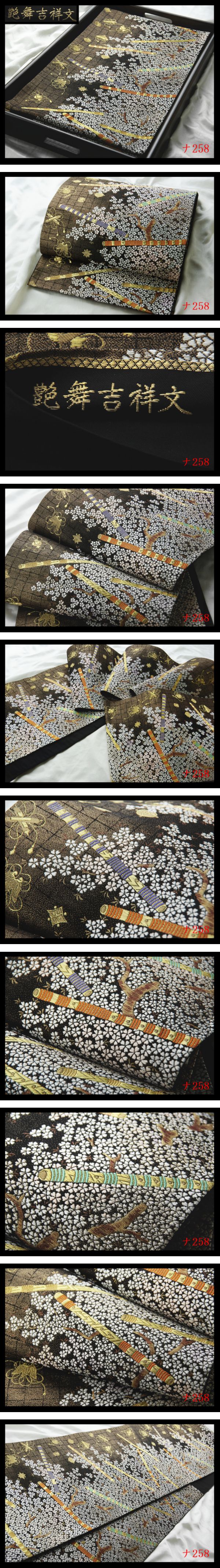 【ナ258】厳選逸品 艶舞吉祥文 黒色地 気品豊かに 正絹純金糸六通高級美術袋帯 検★着物名古屋帯和装小物帯締め 收藏