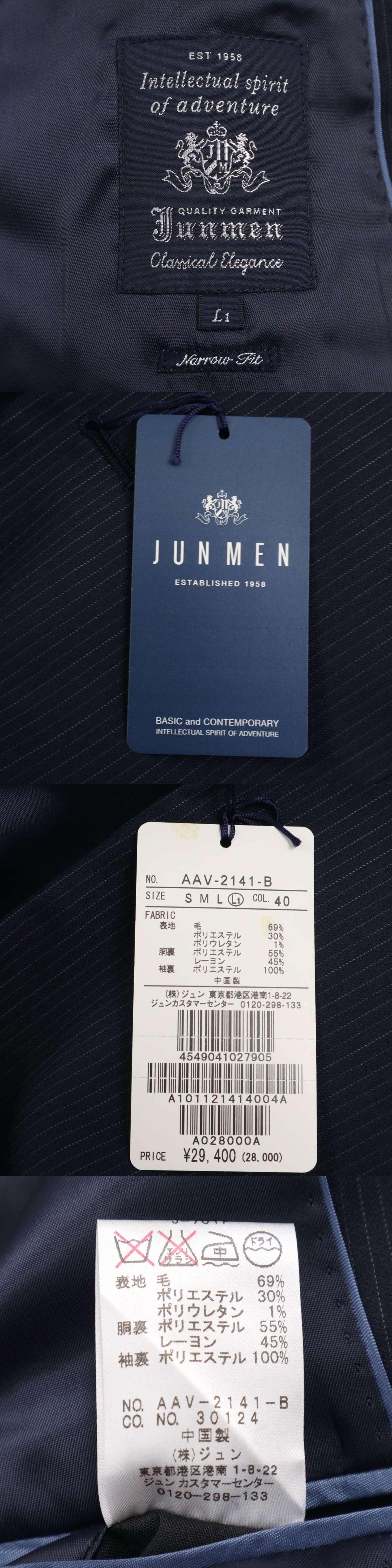 【新品 未使用】 JUNMEN ジュンメン 通年 総裏★ ストライプ テーラード ジャケット Sz.L1 メンズ 紺 ネイビー 收藏