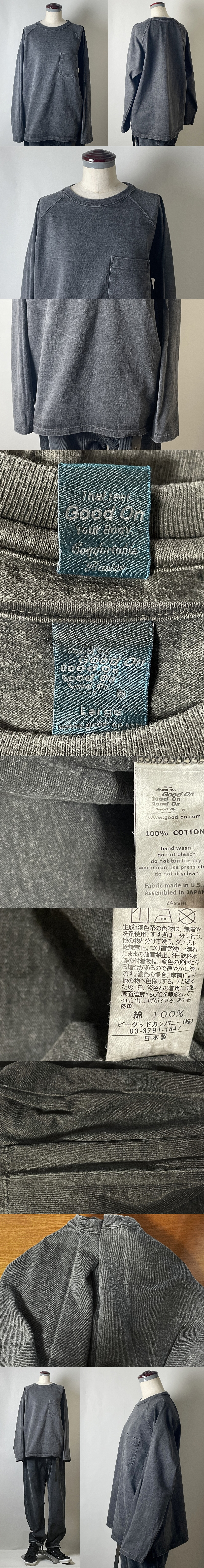 | ★【美品 国内正規品 名作 】Good On グッドオン 日本製 24ssm ラグランスリーブ 長袖 Tシャツ サイズL フェードブラック系 ピグメントダイ | ||||