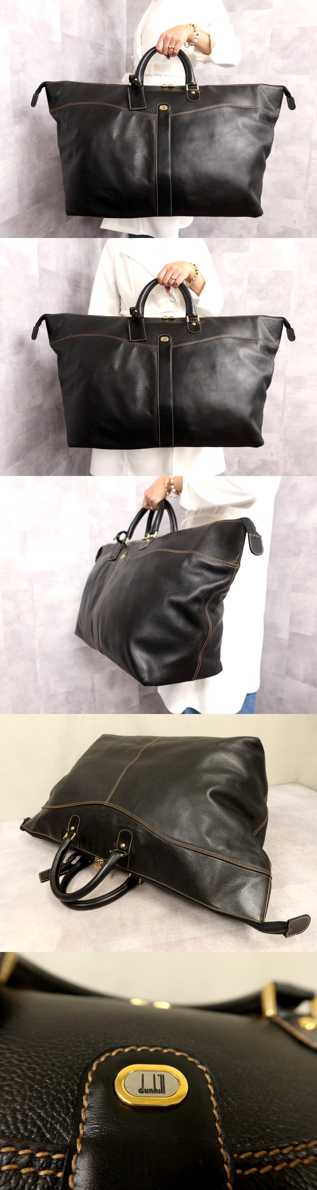 ●超美品●dunhill ダンヒル●ステッチ●カーフ レザー 本革●ボストン バッグ●黒●ゴールド金具●大容量●旅行 収納 かばん●Js62337 收藏